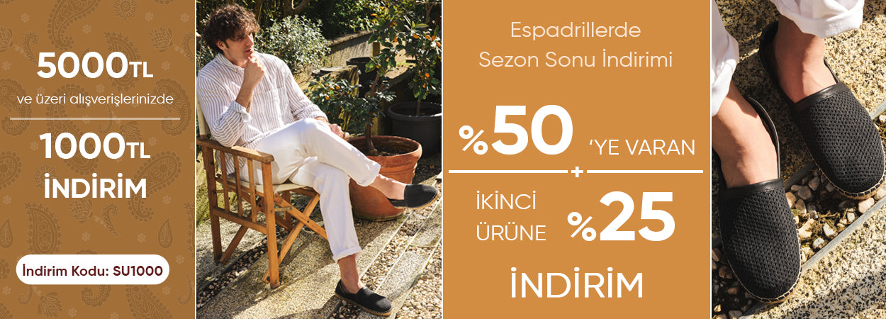 Erkek espadriller, yazın bot veya kapalı ayakkabıların yerini alarak en pratik seçeneklerden biri haline gelmiştir. Hafifliği ve doğal çizgileriyle Su Espadril erkek koleksiyonu her adımda özgürlüğü ve şıklığı bir araya getirir.