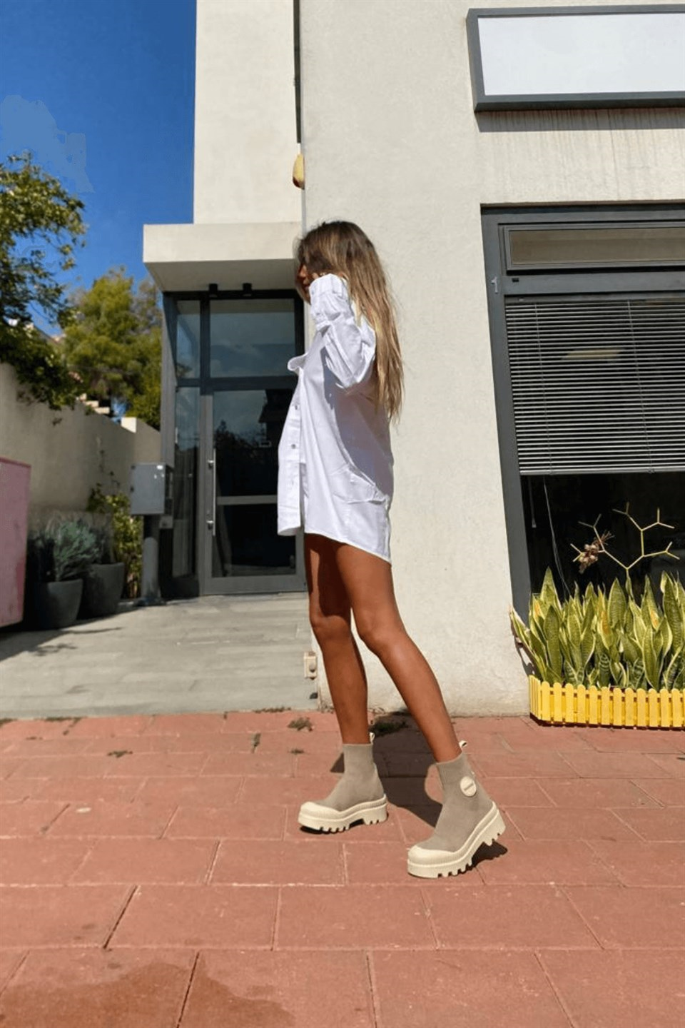 Kremit Triko Jersey Kadın Bot. Streç, Fermuarsız, ayağı rahatlıkla kaplayan bu botları jeanler ve mini elbiselerle rahatlıkla kullanabilirsiniz.