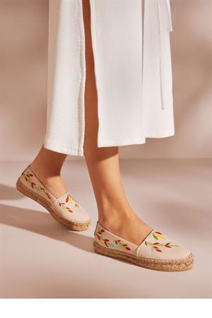 Nataly Ekru-Siyah Kadın Düz Espadril