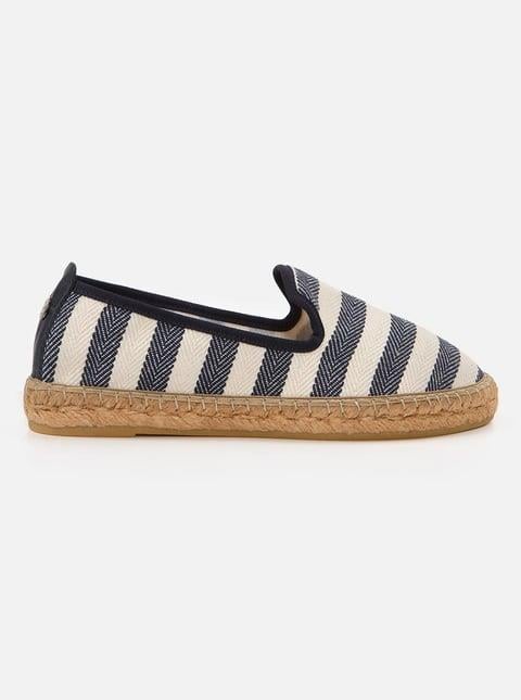 Denizci temasından vazgeçemeyenler için marine çizgili espadril modelimiz Bianca. Doğal keten ile kalın el örgüsü gerçek espadril tabanını birleştirdik. Kot şortlar, denim pantalonlar ve hatta mayonuzla şehirde ,tatilde, teknede rahatça giyebilirsiniz.