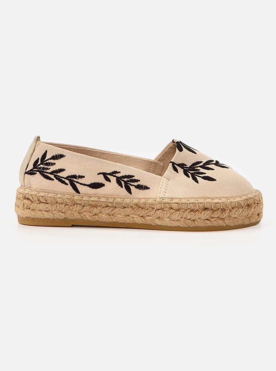 Nataly Ekru-Siyah Kadın Düz Espadril