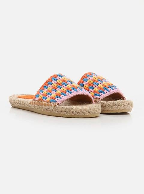 Kinsee Orange-Pink Knitted Women's Espadrille Slippers