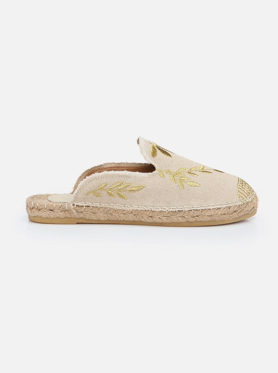 Marat Ecru Gold Embroidered Espadrille Slippers