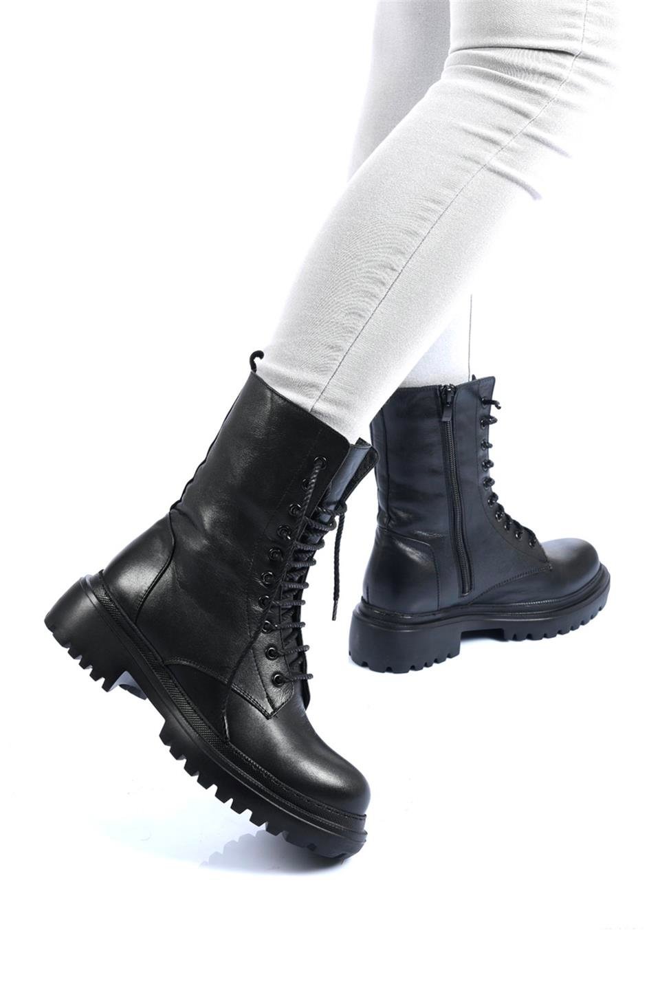 Bütün kışı güven ve rahatlıkla geçirebileceğiniz bu gerçek deri siyah postallar gardrobunuzun vazgeçilmezi olacak.