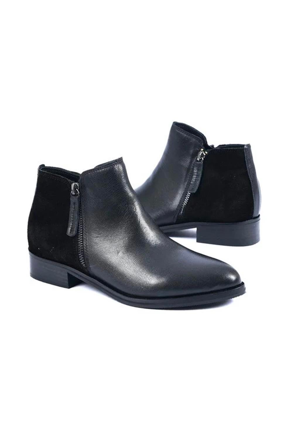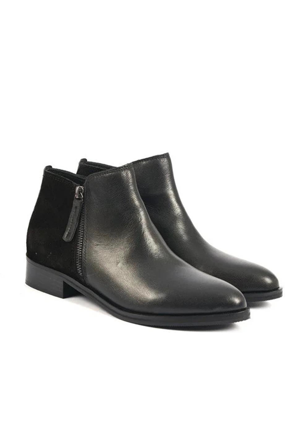 Siyah Bot Leeds Gerçek Deri.Metal süs fermuarı ve ona uyumlu deri-süet kombinli bu bot ile dar paça pantolon ve maksi etekleri kombinleyebilirsiniz.Tabanı yağışlı havalarda kaymaz.